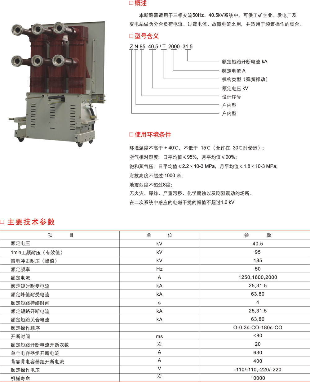 ZN85-40.5C户内高压真空断路器、2000-31.5户内高压真空断路器