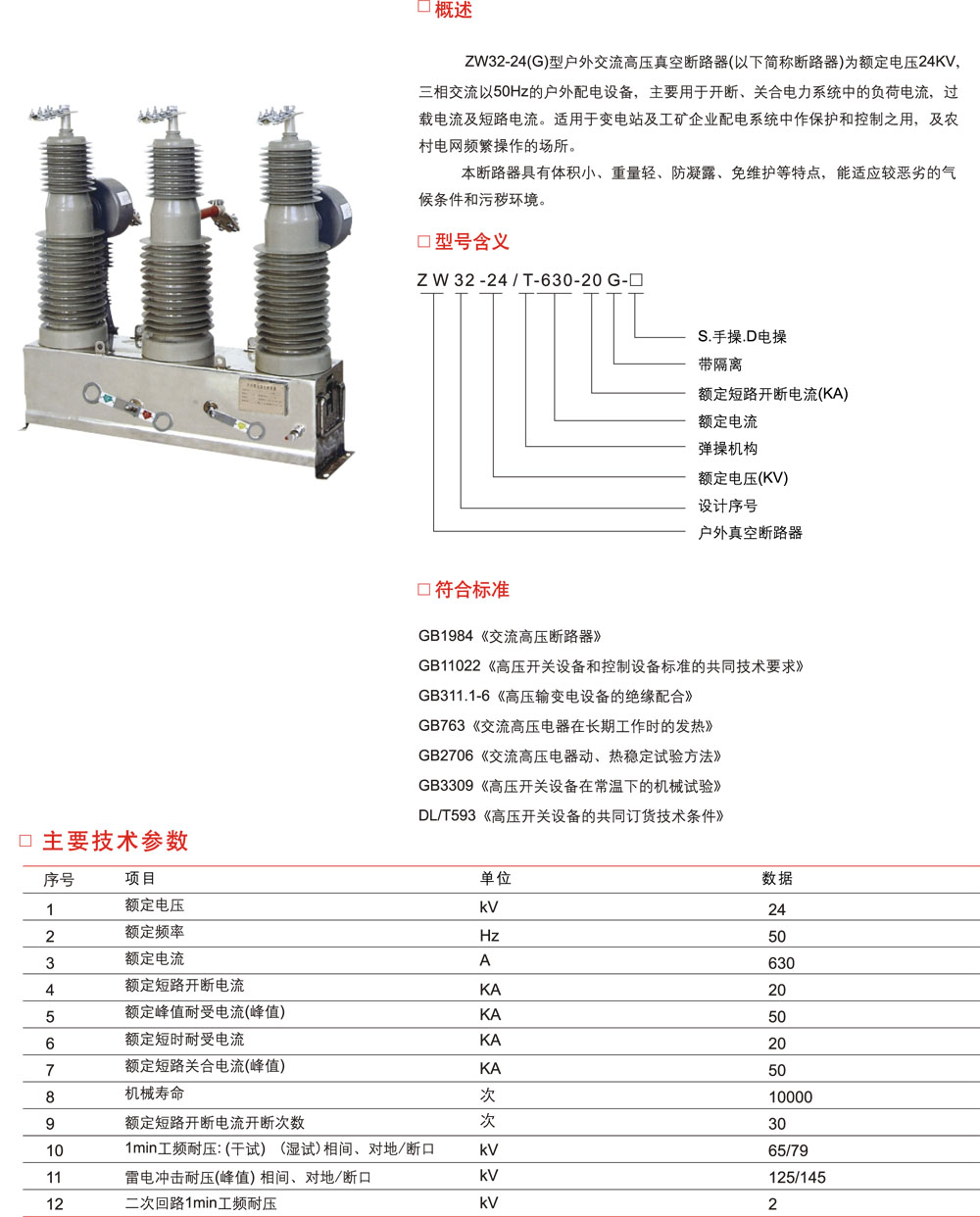 ZW32-24(G)型户外高压真空断路器