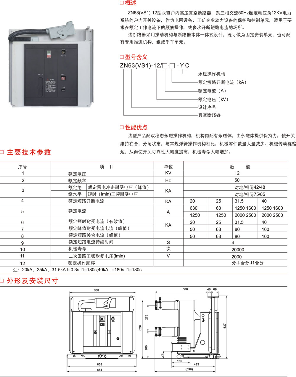 ZN63(VS1)-12侧装式户内高压真空断路器