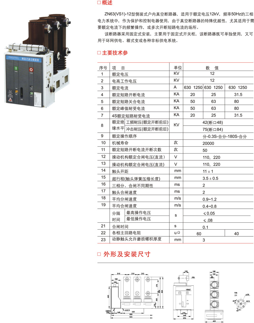 ZN63(VS1)-12侧装式户内高压真空断路器